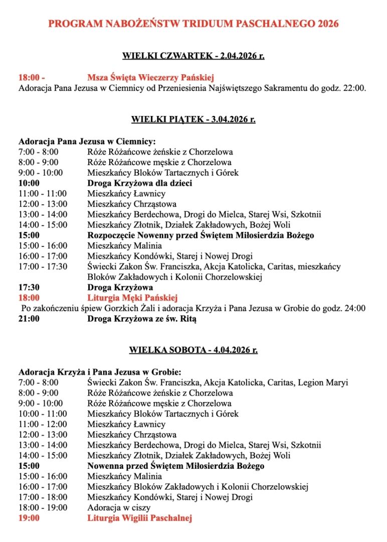 Poniżej prezentujemy to, co przeżywaliśmy w Niedzielę Palmową, rozpoczynającą Wielki Tydzień. Znajdziemy tutaj także plan nabożeństw i spowiedzi: