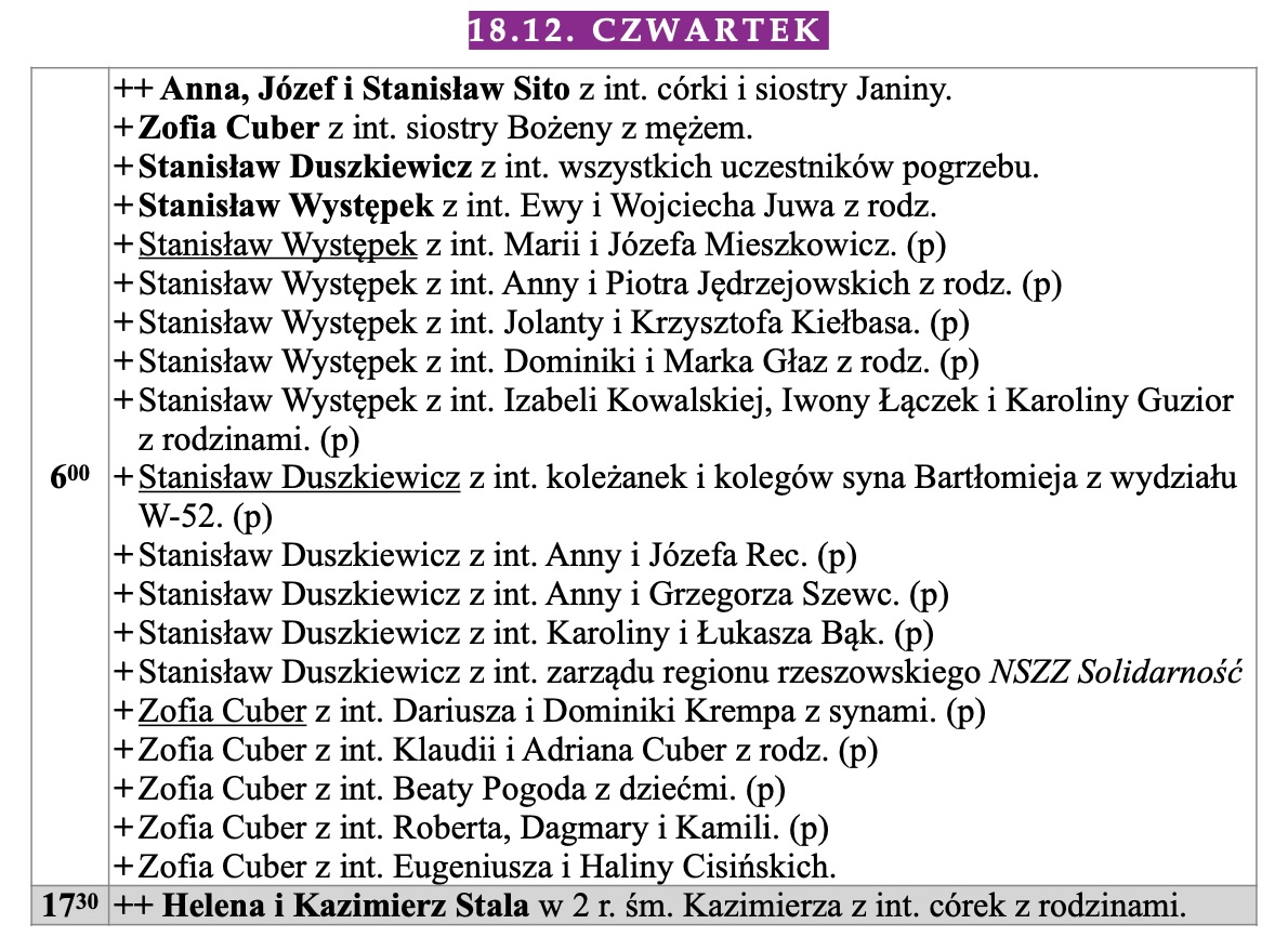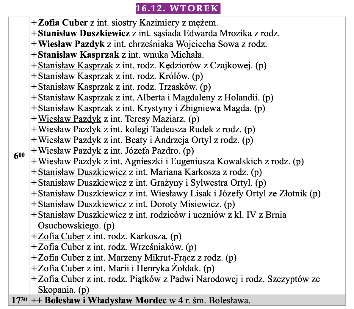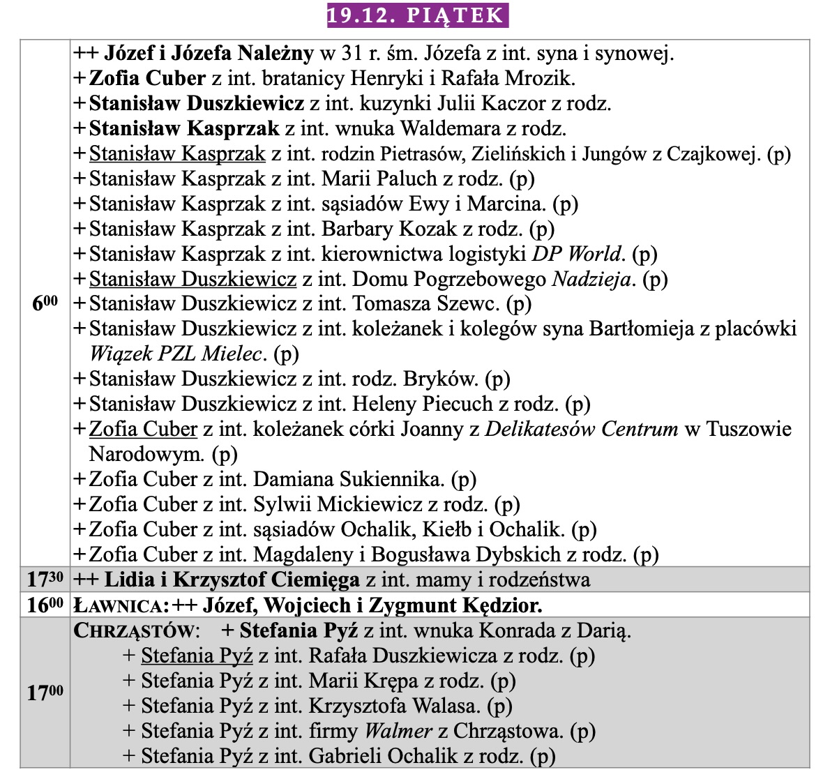 Intencje mszalne 3 niedziela Adwentu, 14.12.2025