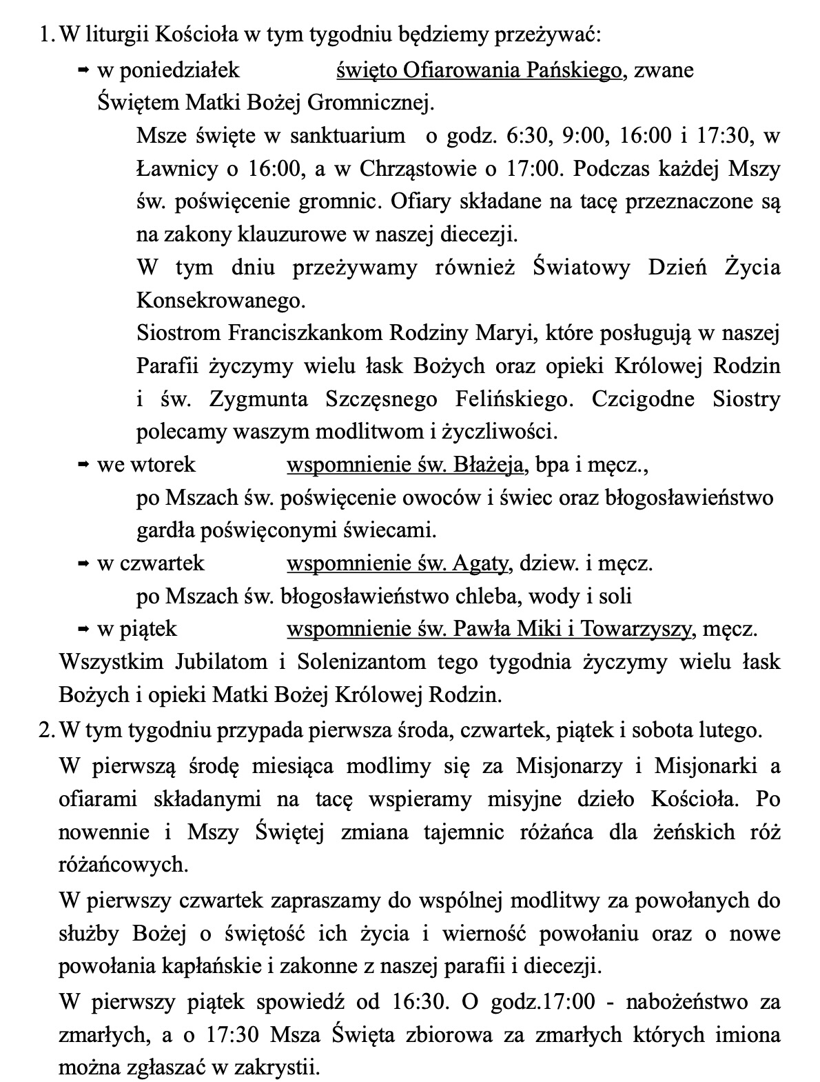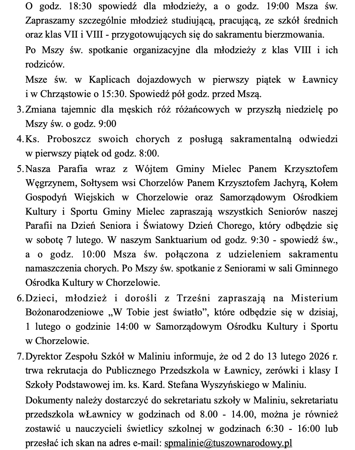 Ogłoszenia, 1 lutego 2026 r.
