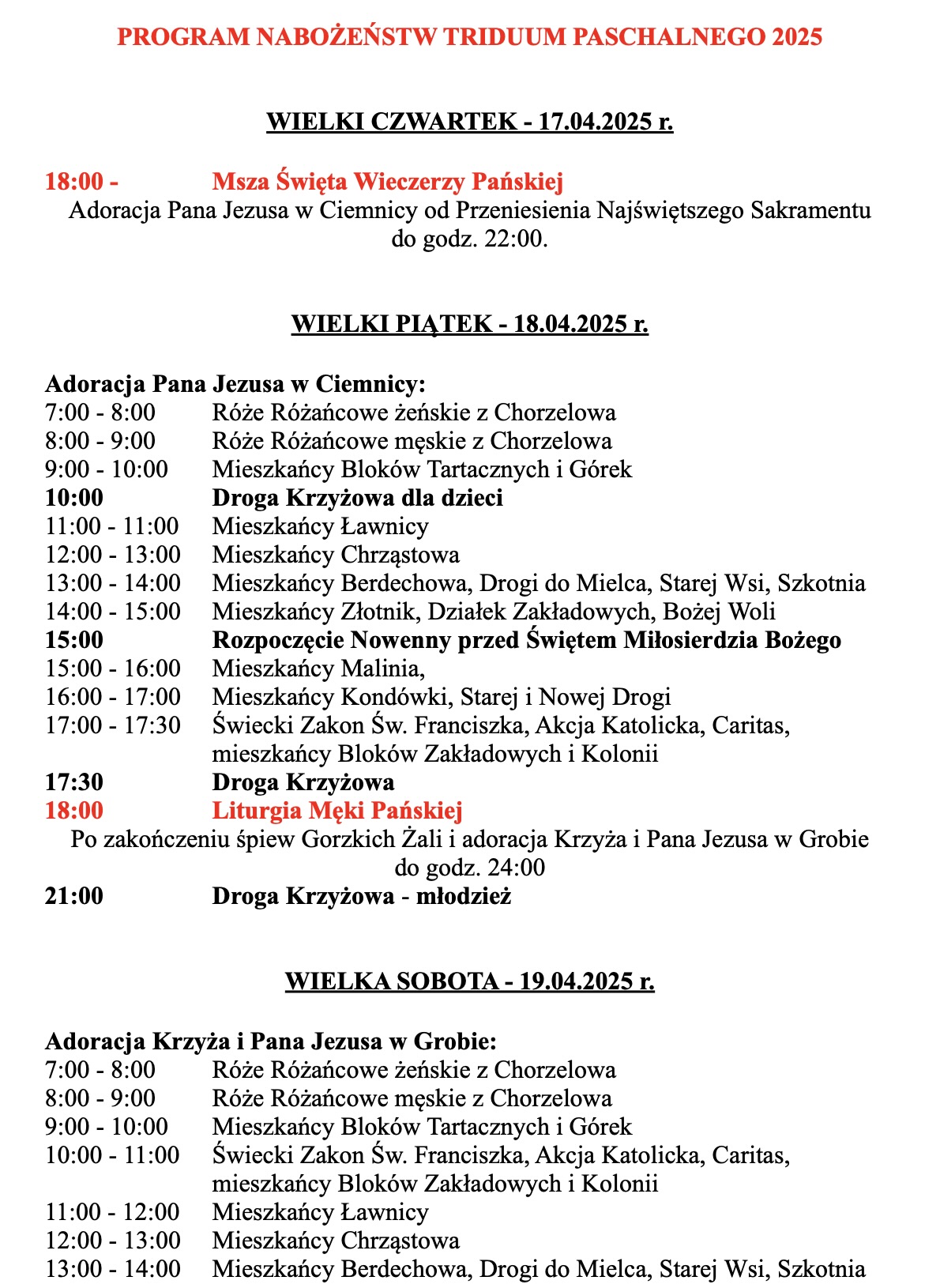 Ogłoszenia, 13 kwietnia 2025 r.