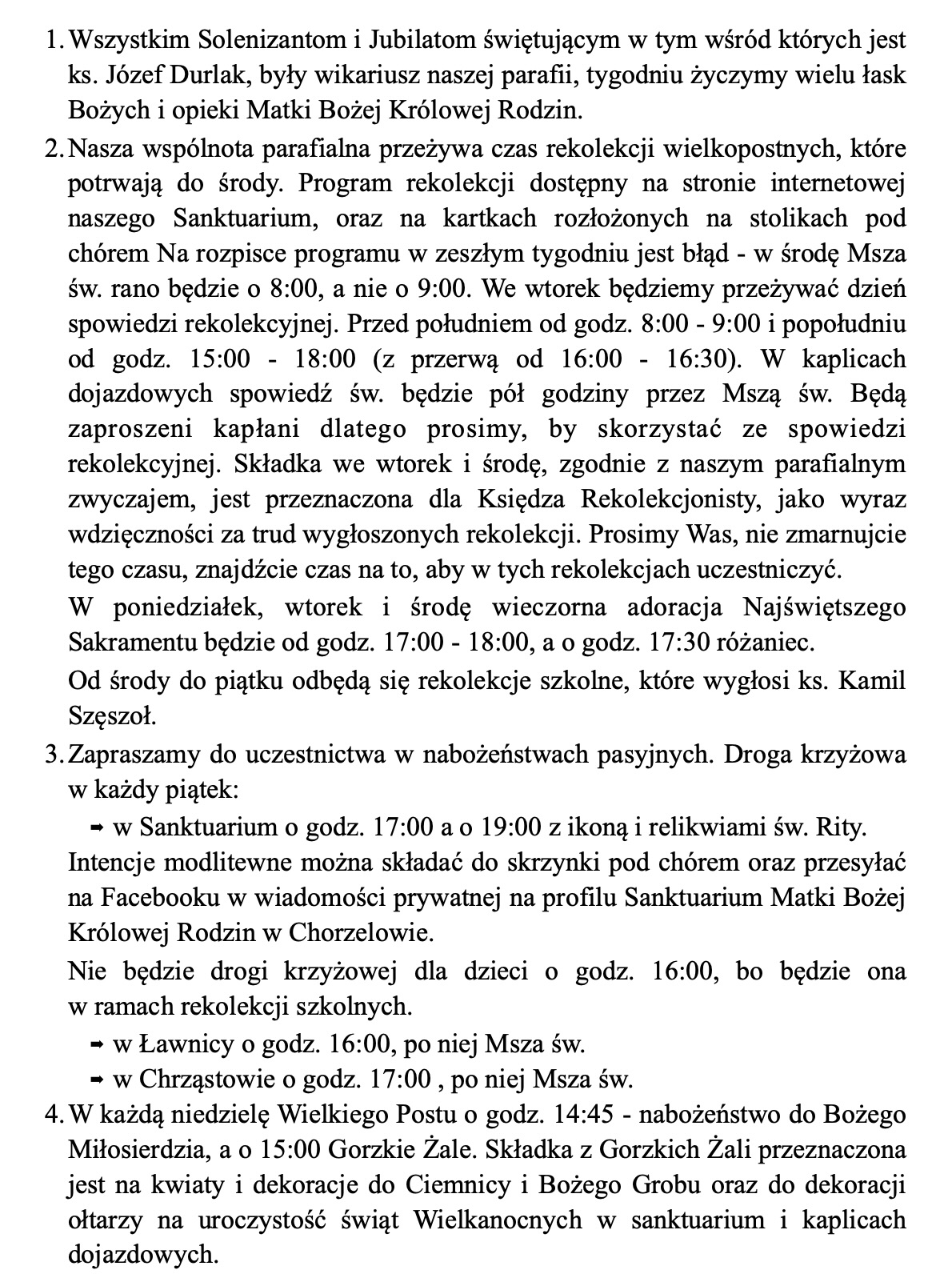 CODZIENNIE Z WYJĄTKIEM ŚWIĄT I PIERWSZYCH PIĄTKÓW MIESIĄCA