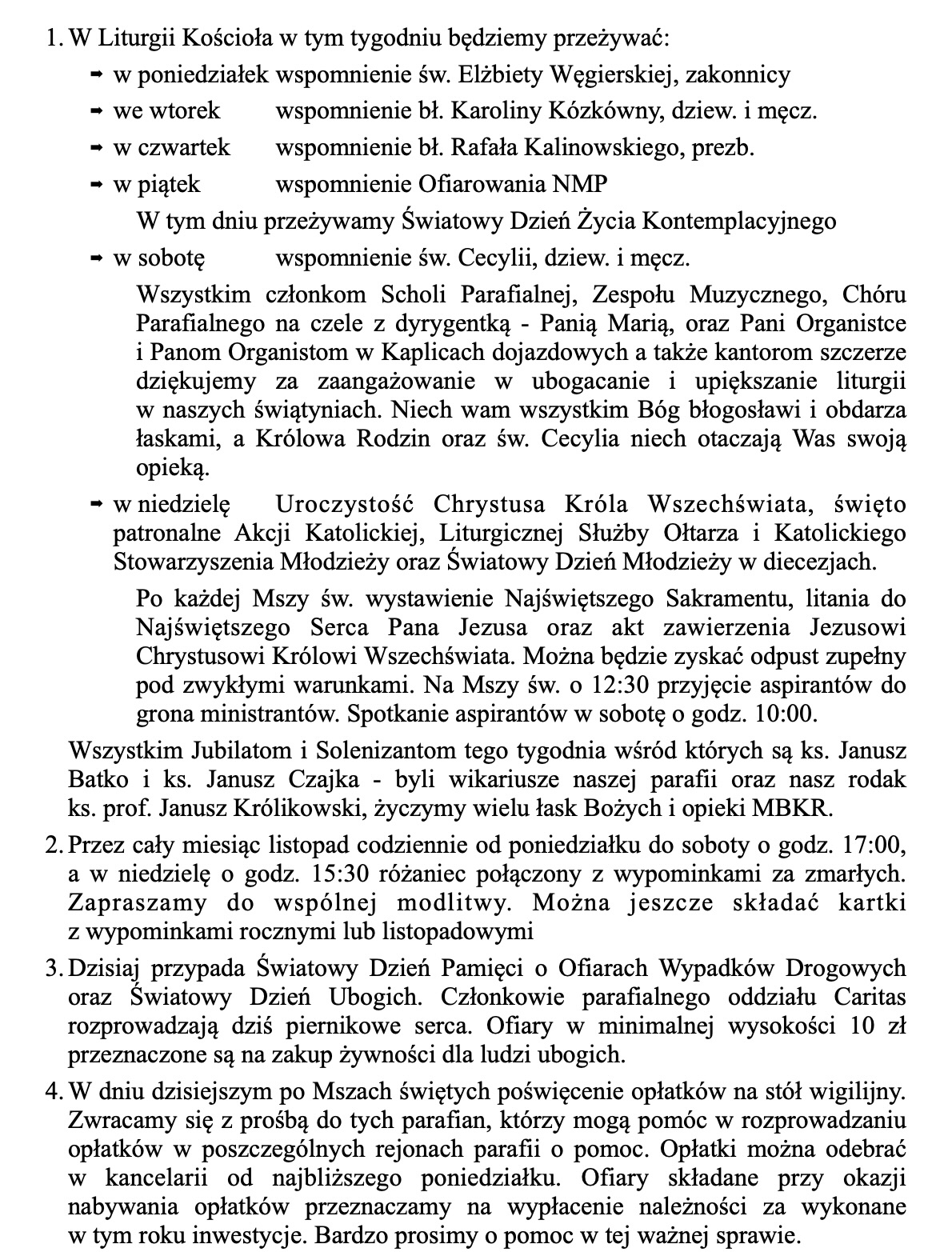 CODZIENNIE Z WYJĄTKIEM ŚWIĄT I PIERWSZYCH PIĄTKÓW MIESIĄCA
