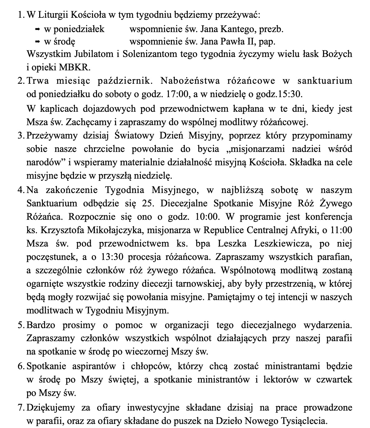 Ogłoszenia, 19 października 2025 r.