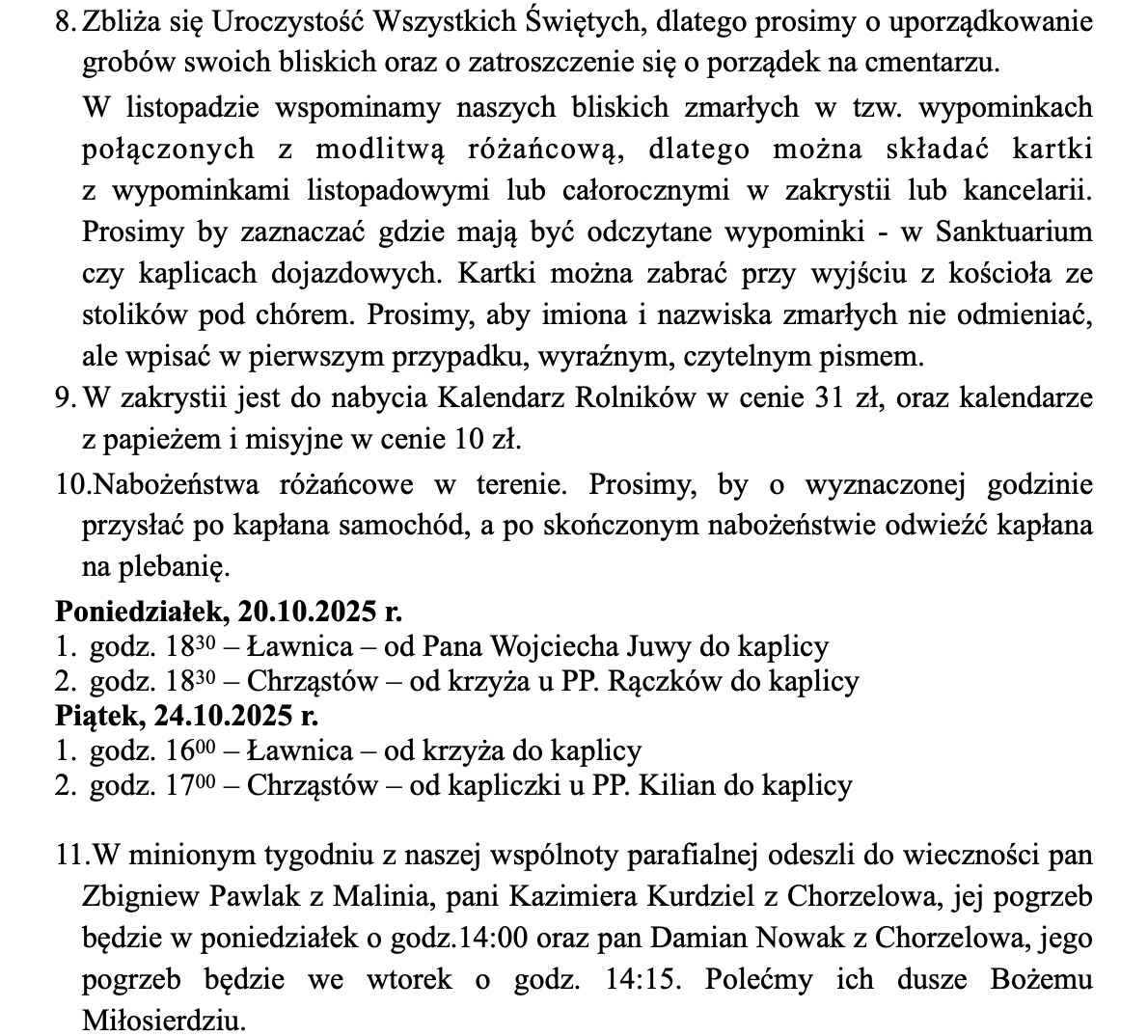Ogłoszenia, 26 października 2025 r.