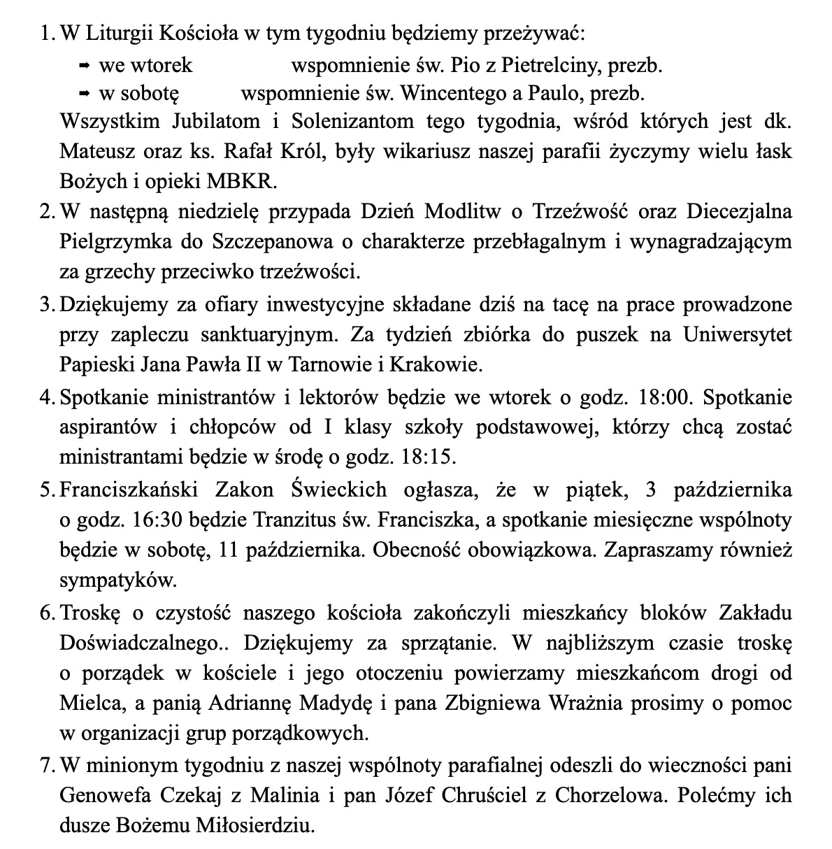 CODZIENNIE Z WYJĄTKIEM ŚWIĄT I PIERWSZYCH PIĄTKÓW MIESIĄCA