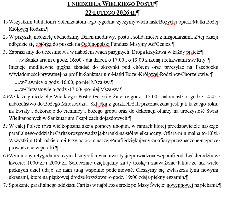 Ogłoszenia, 22 lutego 2026 r.