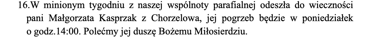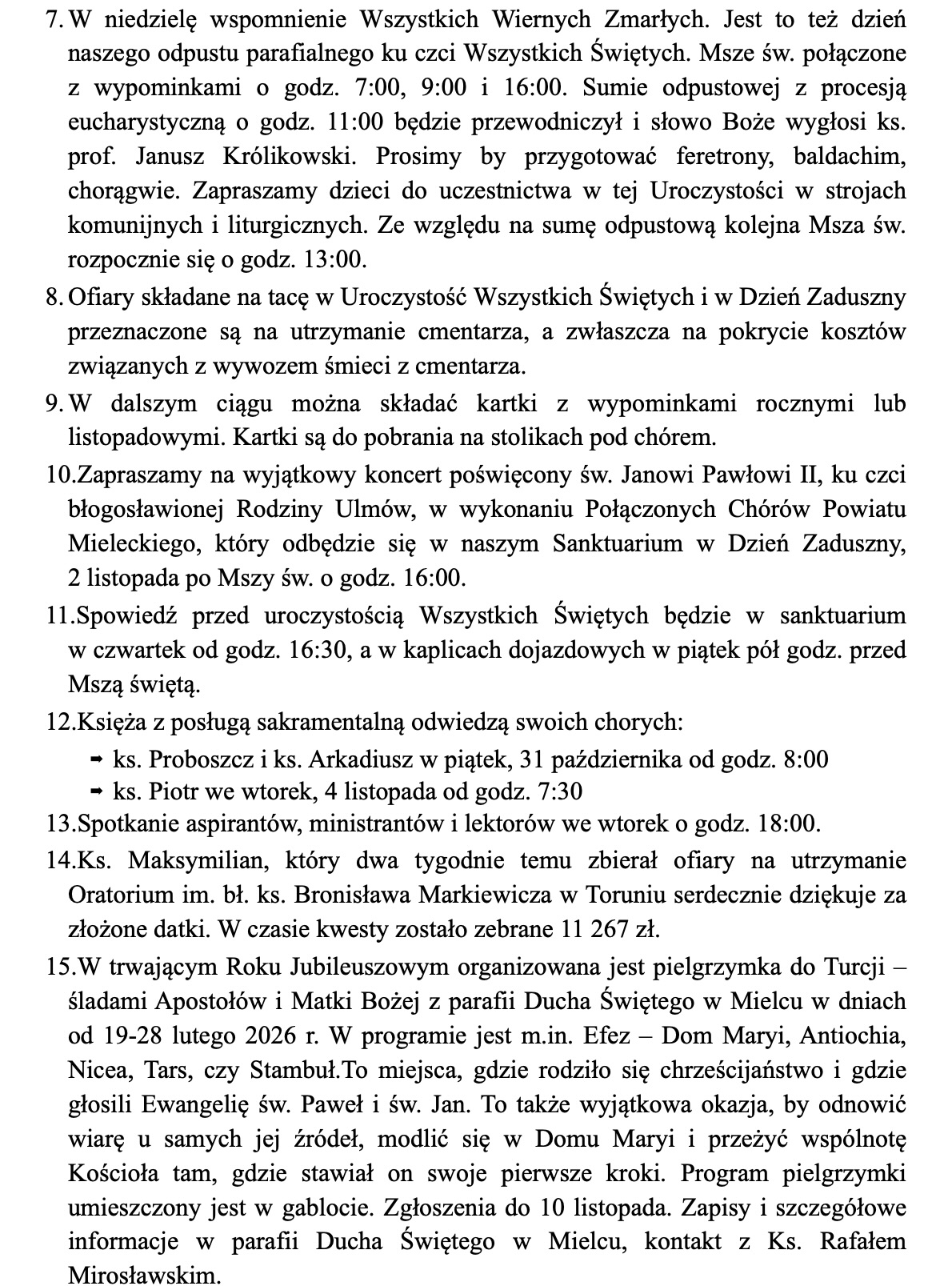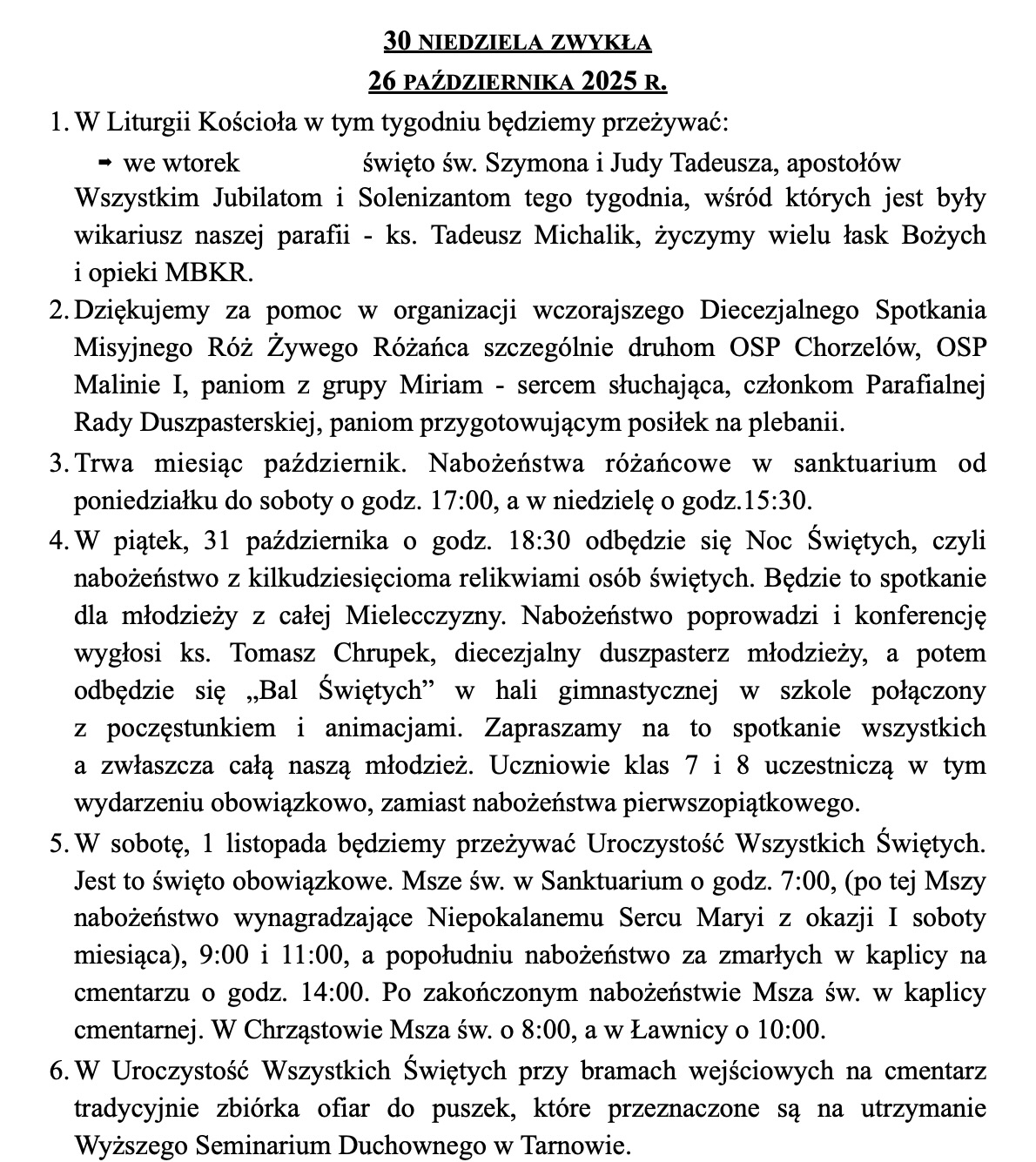 CODZIENNIE Z WYJĄTKIEM ŚWIĄT I PIERWSZYCH PIĄTKÓW MIESIĄCA