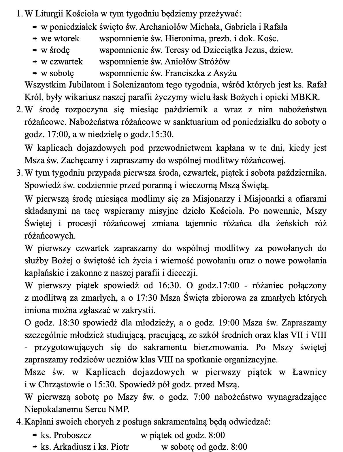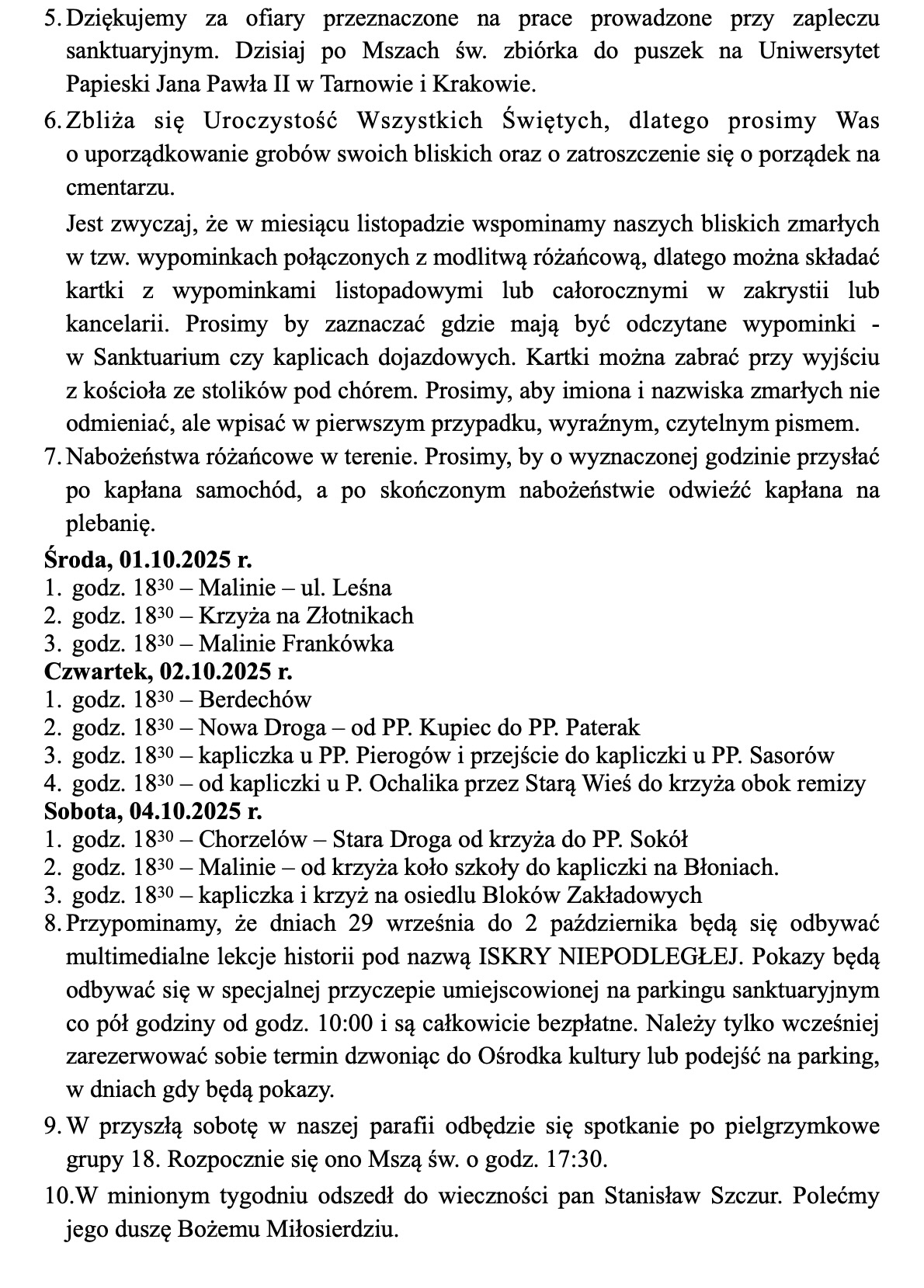 CODZIENNIE Z WYJĄTKIEM ŚWIĄT I PIERWSZYCH PIĄTKÓW MIESIĄCA