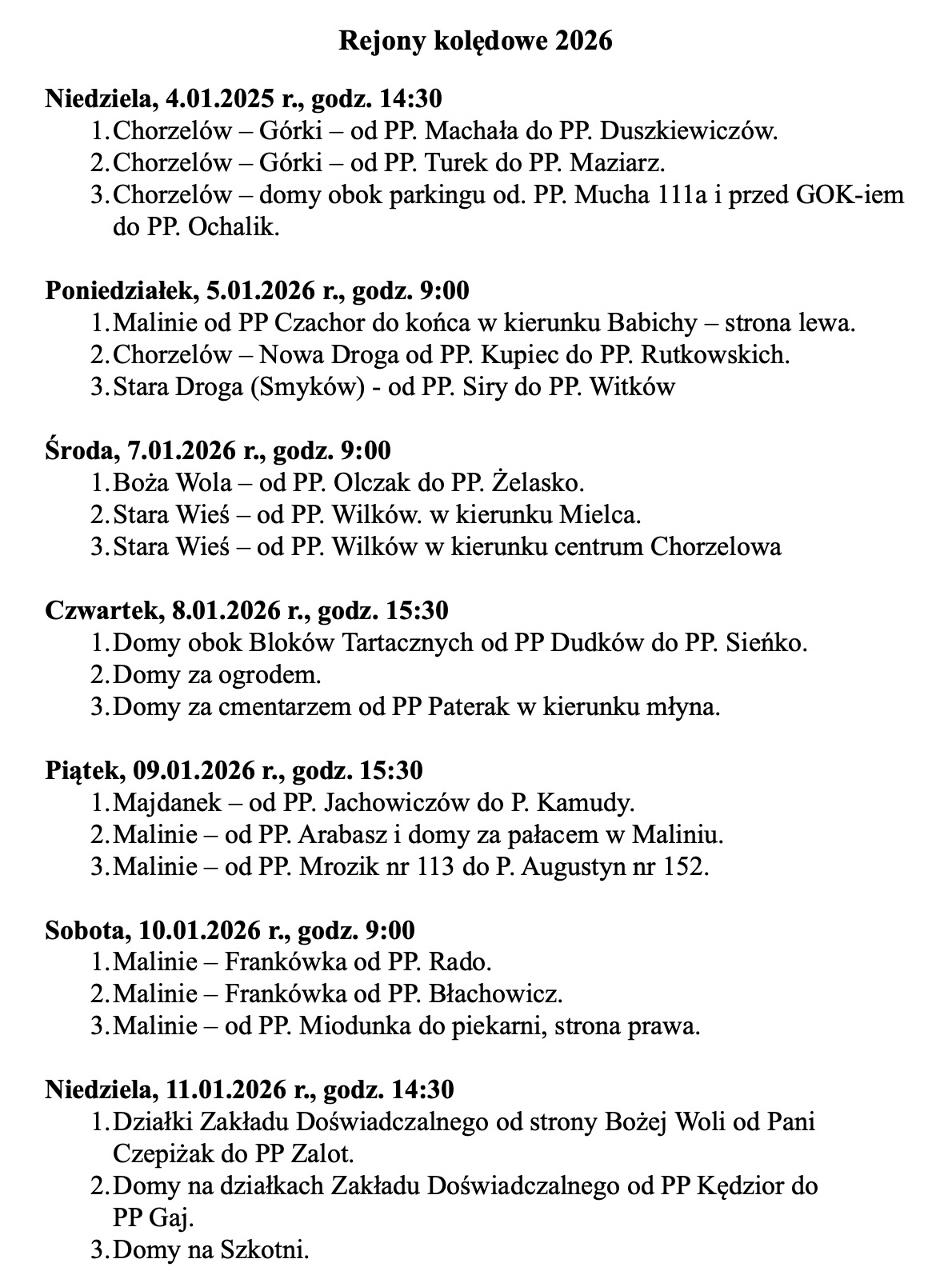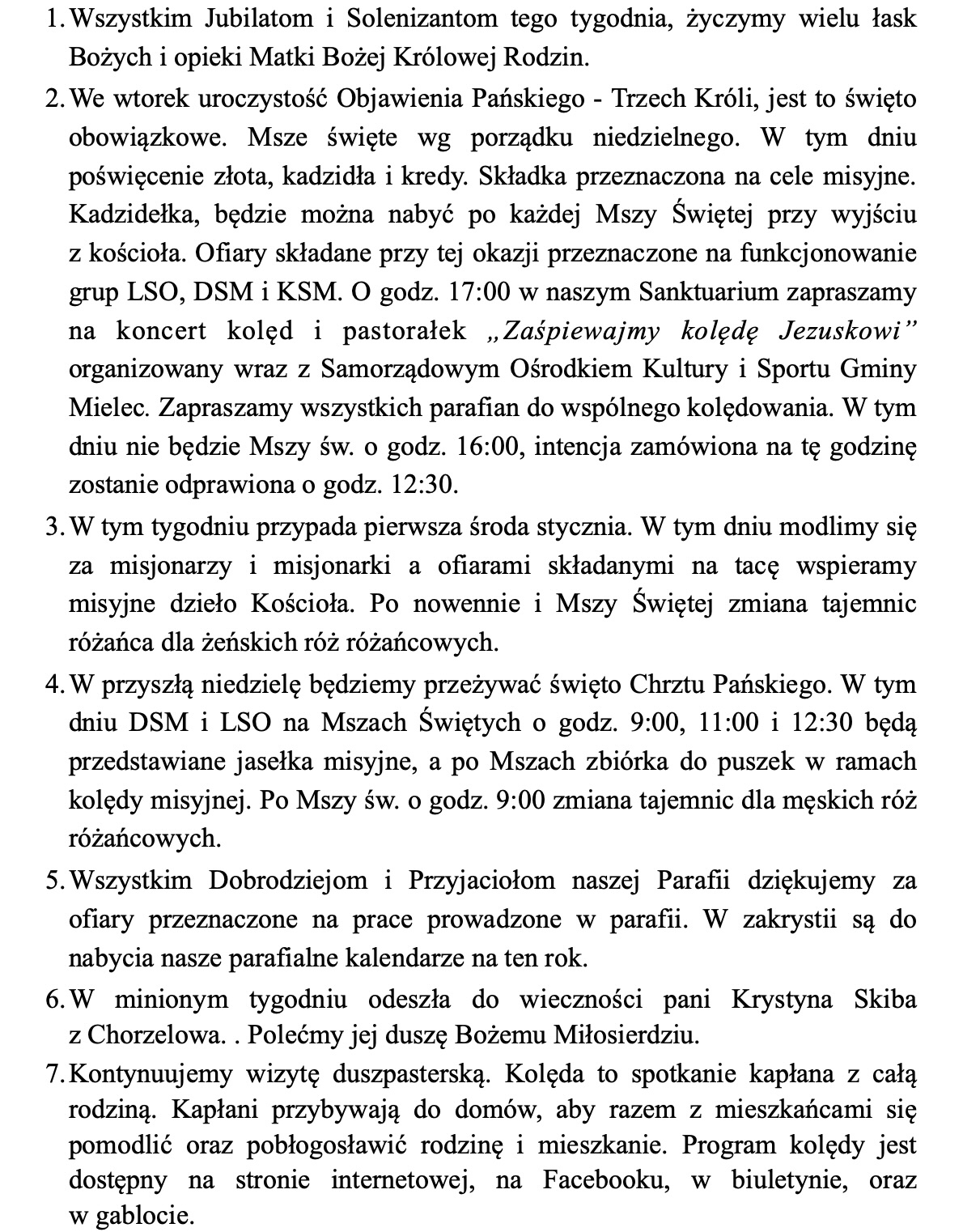 Ogłoszenia, 4 stycznia 2026 r.