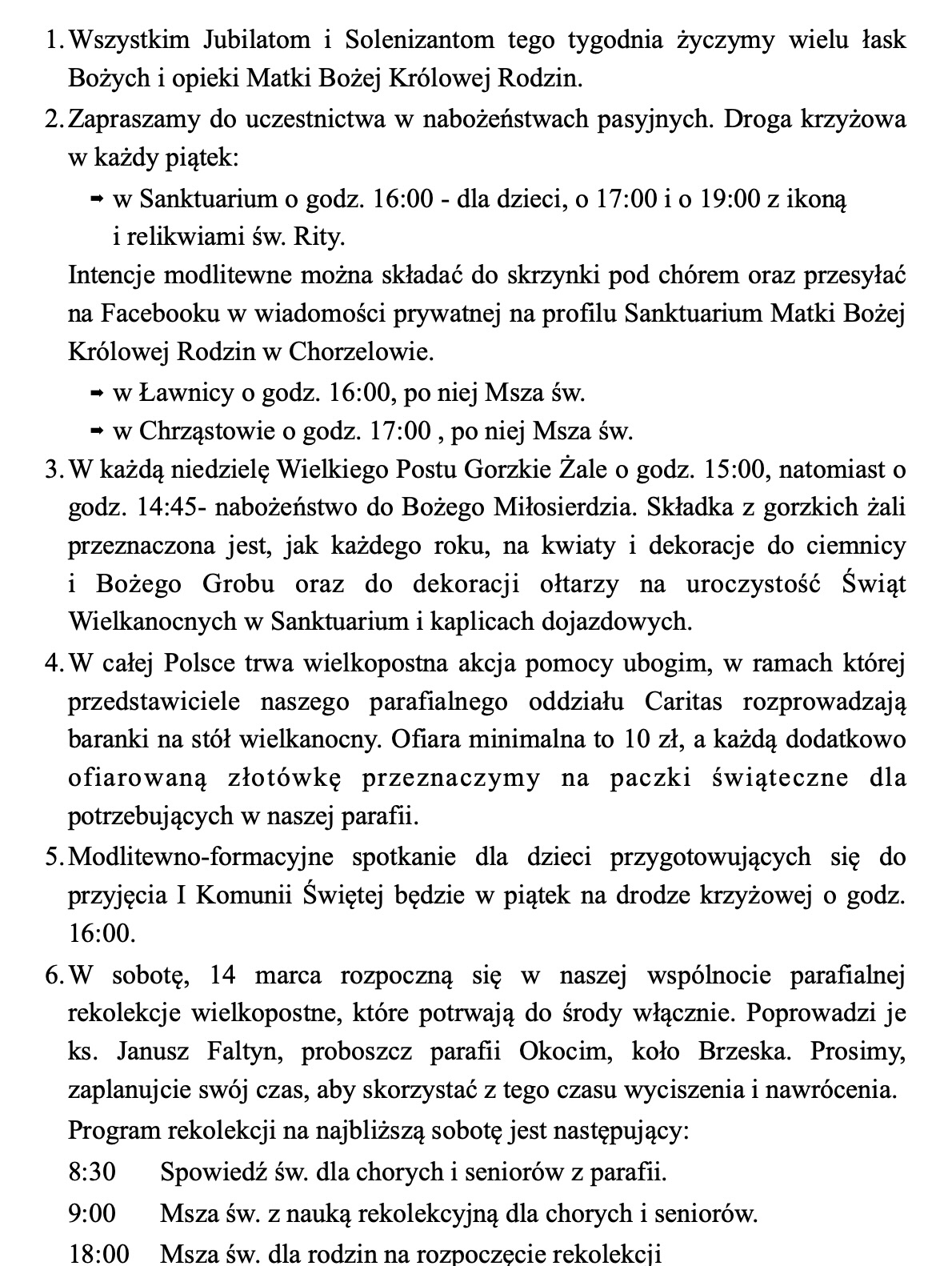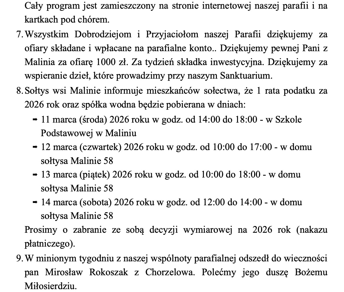 Ogłoszenia, 8 marca 2026 r.